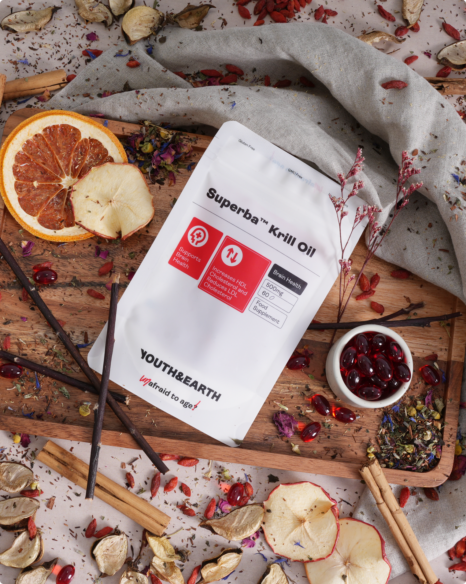 Krill oil is known to combat oxidative stress, aid the immune system, reduce water loss in the skin and generally keep the body healthy and youthful. This is thanks to krill's unique composition of long-chain omega 3 fatty acids and phospholipids including choline. Dietary phospholipids are believed to help reduce the risk of heart disease and have anti-inflammatory and protective properties. By including Superba krill oil in your daily healthcare routine, you'll be taking a more productive approach to optimising your health as you age.