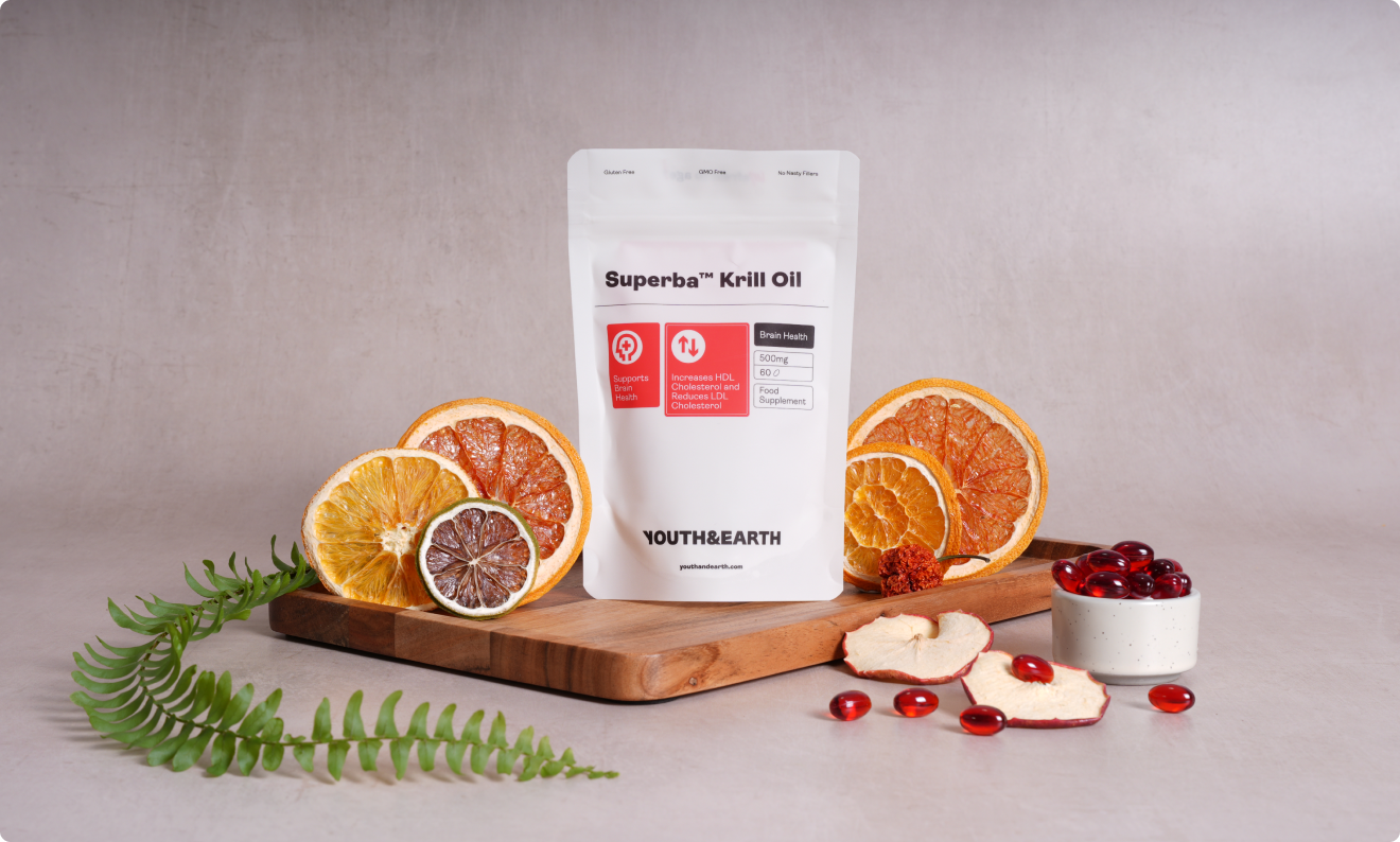 Krill Oil can help to reduce CRP-(C-reactive protein) - a key anti-ageing biomarker linked to inflammation and heart disease. It can also increase HDL, which is good cholesterol and reduce LDL - bad cholesterol. Krill Oil could aid in brain health to maintain proper cognitive function and may improve skin hydration and elasticity, leading to improved skin smoothness and softness. Krill Oil also plays a major role in supporting the immune system and promoting health of your eyesight and the flexibility of your joints.