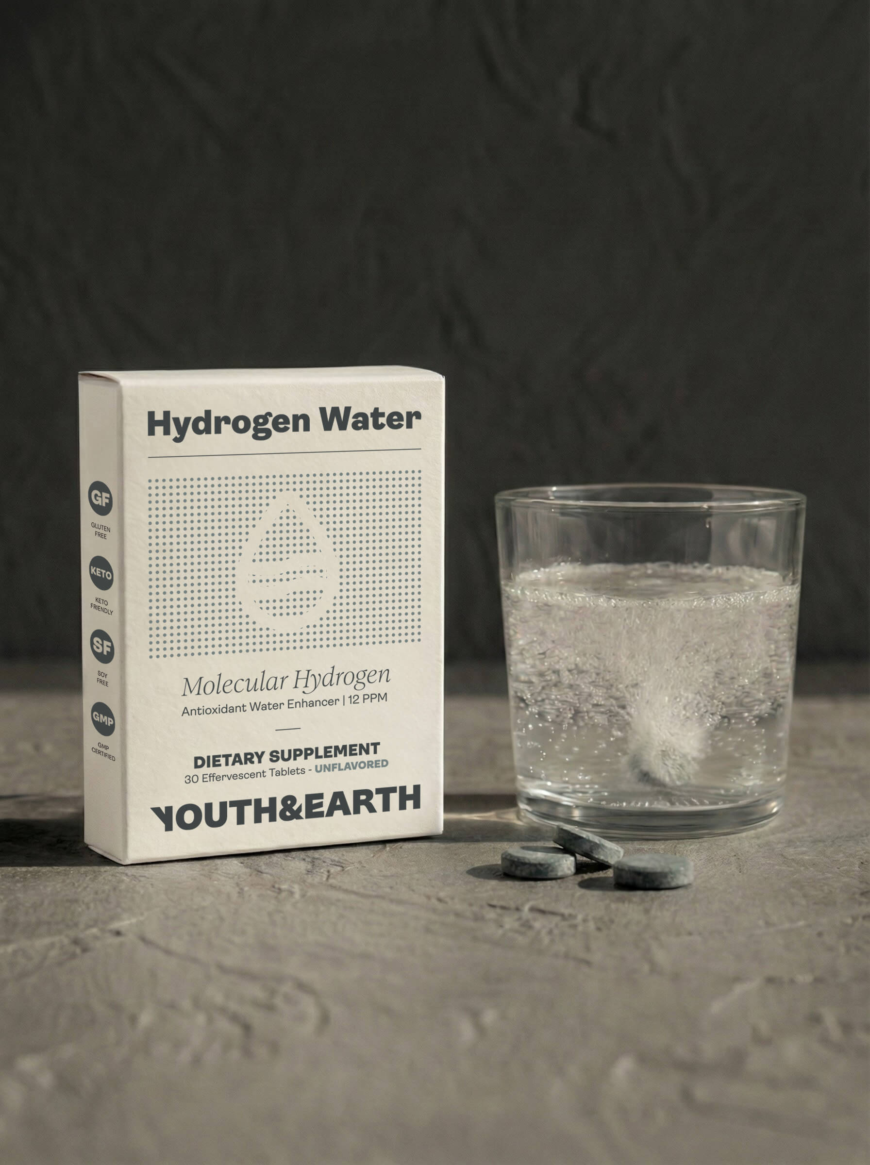 Each pack of Youth & Earth Hydrogen Tabs contains 30 fast-dissolving, magnesium-based tablets. One tab releases millions of H₂ nanobubbles, saturating your glass with molecular hydrogen - the smallest molecule in the universe.  Just 1-2 tabs a day will spark DNA repair at the cellular level, ...