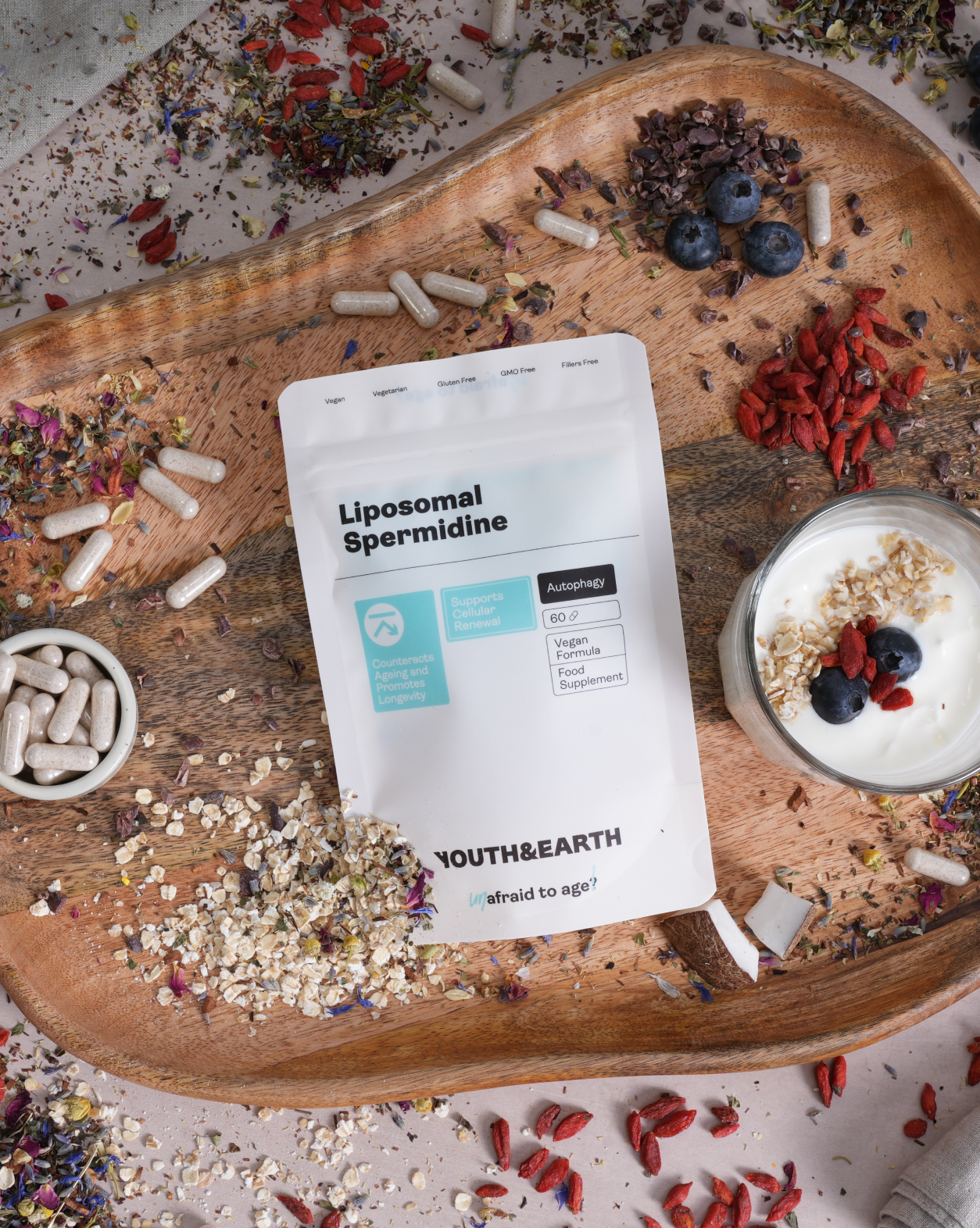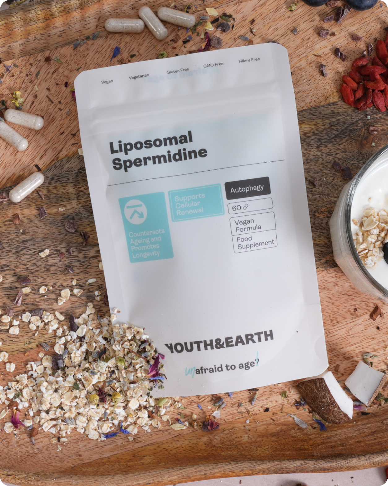 Our Tatler award-winning Spermidine now features a new Liposomal formula, enhancing its ability to counteract ageing and promote longevity by activating autophagy, the body’s cellular renewal and recycling process.