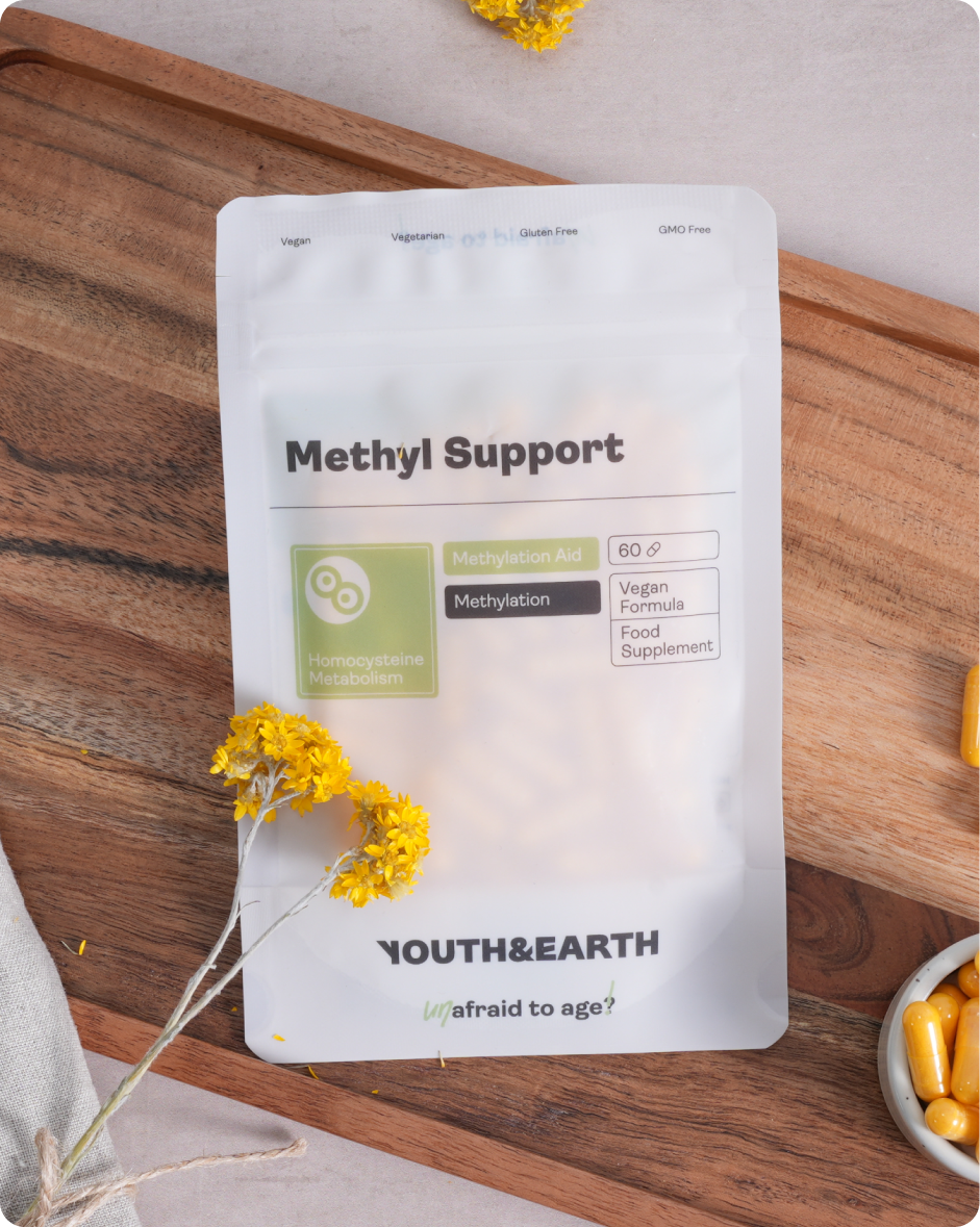 Methyl Support by Youth & Earth is a premium supplement designed to enhance your body's methylation process. Methylation is a critical function that impacts everything from detoxification and hormone regulation to energy production and cardiovascular health. By supporting these processes, Methyl Support helps you